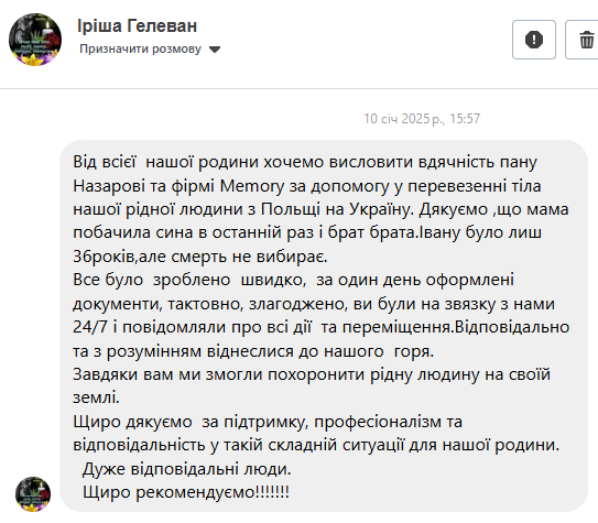 Перевезення померлих (вантаж 200) з Чехії в Україну.